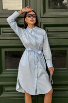 Детали: приталенный силуэт, V- образный вырез горловины переда, застежка по переду на петли и пуговицы, рукава втачные с кружевом по низу, спинка с резинкой по талии, съемный шарфик, платье на подкладке 100% вискоза.