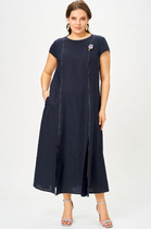 Однотонное платье из вискозы с кружевом. Рукава ниже локтей из кружева, общая длина чуть ниже середины бедра. Декоративные элементы на груди. Три расцветки — черная, коричневая и фиолетовая. Размеры от 46 до 56. Есть розница.