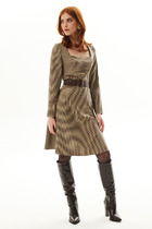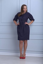 Модель полуприлегающего силуэта, с рельефамии, без подклада. Спереди планка с застёжкой на петли и пуговицы. По низу цельнокроеного рукава обработана отложная манжета. Воротник сорочечный. В боковых швах высокие разрезы. Талия подчёркнута съёмным завязывающимся поясом из основной ткани.