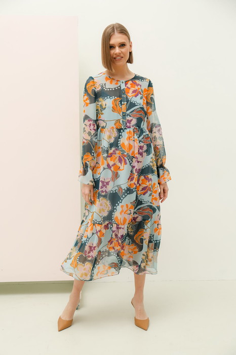 Невероятно стильное романтичное платье из легкого шифона. Талия отрезная, спереди застёгивается на пуговицы. Верхнее платье из шифона, нижнее платье-комбинация.