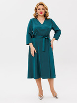 Романтичное платье свободного силуэта на запах длиной миди. Платье отрезное по линии талии и сборкой по юбке. Рукав вточной одношовный 3/4 на резинке снизу. Длина изделия - 119 см. Длина рукава - 40 см.