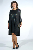 Платье полуприлегающего силуэта, отрезное по талии, выполнено из струящейся ткани с матовым блеском. V-образный вырез горловины. Спереди лифа обработан декоративный узел. Рукава короткие цельнокроеные. Спинка лифа со средним швом, по линии талии для комфорта обработана резинка. Крой юбки по косой.