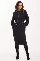 Платье женское предназначено для повседневной носки. Платье женское, полу прилегающего силуэта, длиной за колено. Перед с2-мя нагрудными вытачками и средним швом. Спинка с 2-мя таллиевыми вытачками средним швом. Платье с отрезными бочками. Горловина фигурная. Срезы горловины переда, среднего шва переда, низа платья, боковые швы переда и спинки обработаны косой бейкой из отделочной ткани, ширина бейки 1,2 см. Вырез горловины декорирован пришивным бантом из отделочной ткани и пришивной стразой. Низ платья фигурный. Рукав втачной, одно шовный, длиной 7/8. Платье с плечевыми накладками. Длина спинки 100 см, длина рукава 49 см
