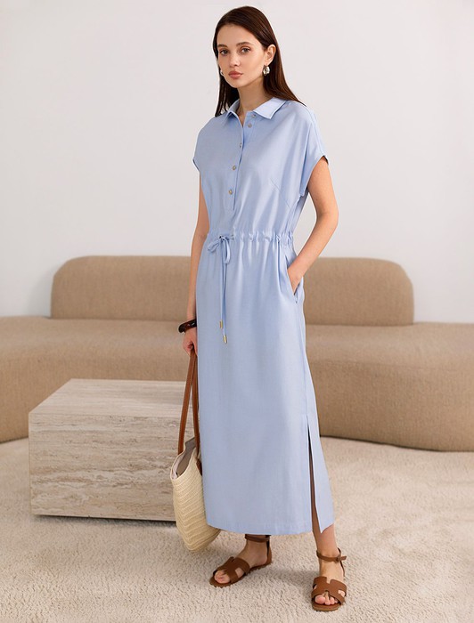 Платье-рубашка с кулиской на талии из плотного лиоцелла