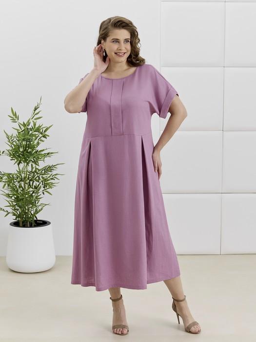 Платье женское из гладкокрашеной плательной ткани, отрезное по линии талии, расширенное книзу, с короткими цельнокроеными рукавами, обработанными манжетами. По центру полочки выполнена декоративная планка, по соединительном шву лифа и юбки заложены встречные складки.