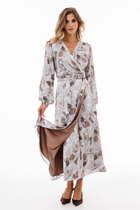 Выполнено из легкой, струящейся смесовой ткани. На спинке платья расположена кулиса, которая позволяет регулировать степень прилегания.