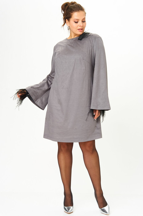 Съемные декоративные  манжеты придают романтичность и нарядность образу. Манжета  выполнена из атласной ткани  и декорирована "перьями". Платье А-силуэта. Рукав длинный расширенный  к низу.