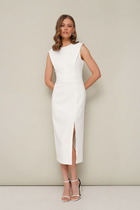 Платье женское полуприлегающего силуэта с втачным рукавом. Горловина округлой формы. Застежка на потайную молнию в левом боковом шве с разрезом по низу. Перед с вытачками по линии груди и талии. По спинке вытачки по линии талии.