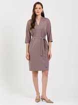 Верхнее платье из шифона свободного кроя расширено к низу, с втачным рукавом. По горловине воротник стойка с застежкой по спинке на две воздушные петли и пуговицы. Рукав длинный  расширенный к низу. В боковых швах высокие разрезы.