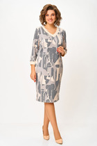 Платье из мягкой вискозной ткани (плательный креп турецкого производства) прямого силуэта. По переду обработаны нагрудные выточки, спинка цельнокроеная. В боковых швах обработаны карманы, по низу боковых швов – разрезы. Рукав втачной одношовный, со сборкой по шву притачивания манжеты. По низу рукава обработана широкая манжета 10,5 см, застёгивающаяся на 4 пробивные петли и 4 декоративные пуговицы.