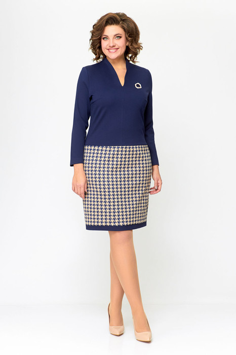 Платье Swallow 699.1 королевский синий+сине-бежевая гусиная лапка