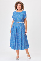Платье Swallow 757 ярко-голубой+принт бело-бежевые камни
