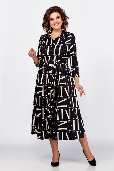 Совместные покупки Пермь Женская одежда Платья — Платье Swallow 784 черный+принт бежевые буквы
