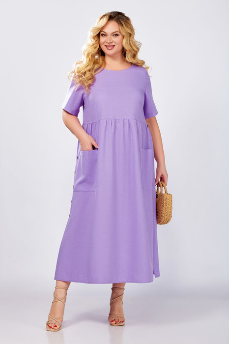 Платье из вискозно-льняной ткани прямого силуэта длиной миди. Платье с отрезной, слегка завышенной линией талии и сборкой по юбке.