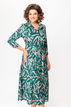 Платье женское, прямого силуэта с длинным рукавом. Рукав со спущенной линией плеча, по низу на манжете. Горловина оформлена высокой, мягкой стойкой. По боку разрез, акцентирован декоративной сточкой. Спинка без особенностей.