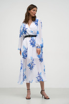 Нарядное платье полуприлегающего силуэта, выполненное из стрейчевой плательно-костюмной ткани. Ассиметричный крой в сочетании со стильной фурнитурой создаёт яркий притягательный образ для праздничных событий.