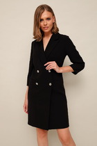 Стильное платье А-силуэта, выполненное из вискозы с оригинальным принтом. Платье отрезное по линии талии. Верхняя часть переда платья с круглой горловиной, спинка - со средним швом и капелькой, застегивающейся на навесную петлю и пуговицу. Рукав цельнокроенный, длиной 7/8. Нижняя часть платья покроя полусолнце. На одной из сторон юбки переда обработана отделочная планка с декоративными пуговицами, внизу - разрез. В боковых швах в области бедер обработаны карманы. В центральной части переда в области талии - притачной пояс со съемной декоративной цепью, которая изящно подчеркивает линию талии. По боковым швам и спинке пояса вставлена широкая резинка.