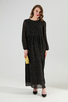 Платье полуприлегающее, расширенное к низу. Спереди отрезное выше линии талии с втачной декоративной планкой. Юбка по переду с рельефами и карманами. Лиф декорирован вышивкой. Рукав втачной короткий. Спинка приталена вытачками, в среднем шве молния. Длина изделия 118 см.