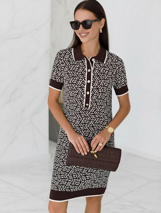 Состав: 50%Вис 20%ПА 20%ПЭ 10%Кашемир Плотность: 12 GG Параметры модели на первом фото: Рост 170, бюст 83, талия 64, бедра 88Платье жаккардовой вязки выполнено из нежной пряжи на основе вискозы с добавлением кашемира. Модель прямого силуэта с застежкой планкой как у поло. Фигурные золотистые пуговицы вносят изысканности и роскоши. Изделие приятно ощущается на теле и поддерживает комфортный микроклимат. Жаккардовое вязание - это один из самых дорогих способов изготовления трикотажных изделий, так как для вязания используется сразу несколько цветов нитей. Жаккард вяжется намного дольше, чем однотонное полотно, имеет гораздо больший вес и плотность. Благодаря этому трикотаж дольше сохраняет красивый внешний вид, не пилингуется и не подвержен спуску петель. Два цвета пряжи использовано также для горловины и низа изделия, которые обработаны рибсами с добавленией спандекса. Спандекс позволяет сохранить форму платья на длительное время, даже после многократных стирок.