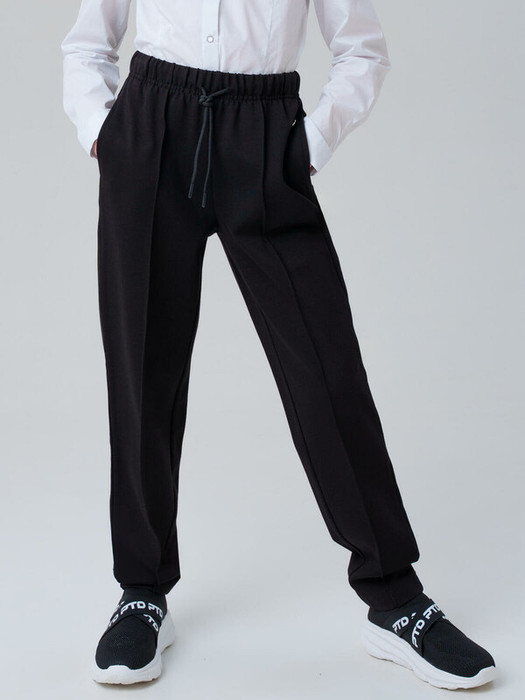 Классические черные школьные трикотажные брюки для девочки.