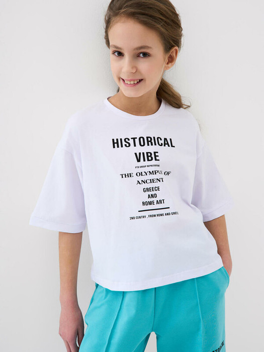 Футболка оверсайз для девочки подростка. Модель выполнена из эластичного хлопкового трикотажа джерси. На груди расположен крупный принт.