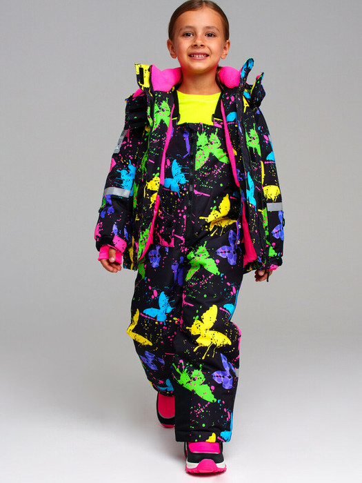 Мембранный материал делает этот яркий и модный комбинезон непромокаемым: мембрана не пропускает влагу снаружи, но выводит её изнутри, что крайне важно во время подвижных игр и занятий спортом.