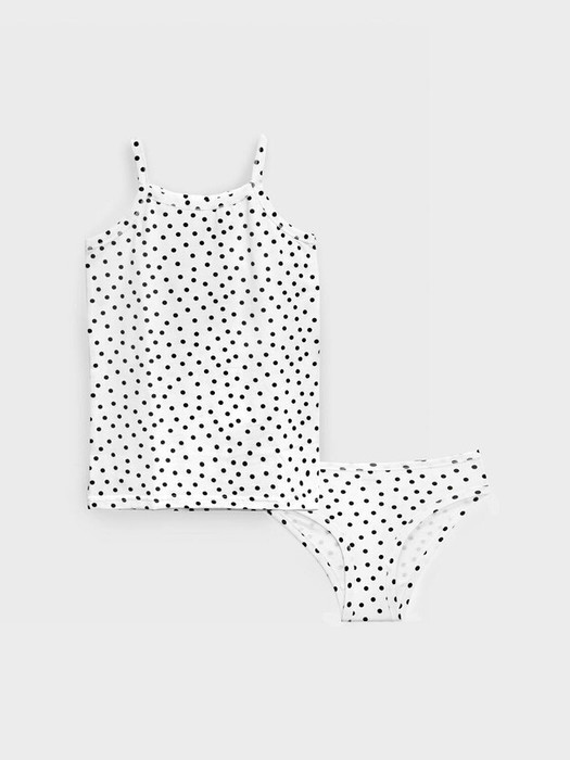 Комплект белья детский для девочки. Комплект белья: майка и трусы-слипы. Майка на тонких нерегулируемых бретелях. Высокое содержание хлопка. Благодаря наличию эластана в составе ткани изделие проще в уходе и держит форму.
