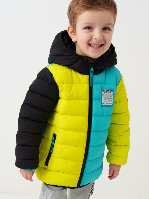 Детская демисезонная куртка для мальчика. Температурный режим от +15С до 0С. Материал верха с ветрозащитным и водоотталкивающим покрытием. Внутри — подкладка из гладкой таффеты. Капюшон несъемный с эластичной окантовкой. Два боковых кармана на молнии. Внутренний карман на липучке. Манжеты и низ изделия дополнены мягкими эластичными резинками. Слева на груди — декоративная нашивка, на спинке — светоотражающий элемент.