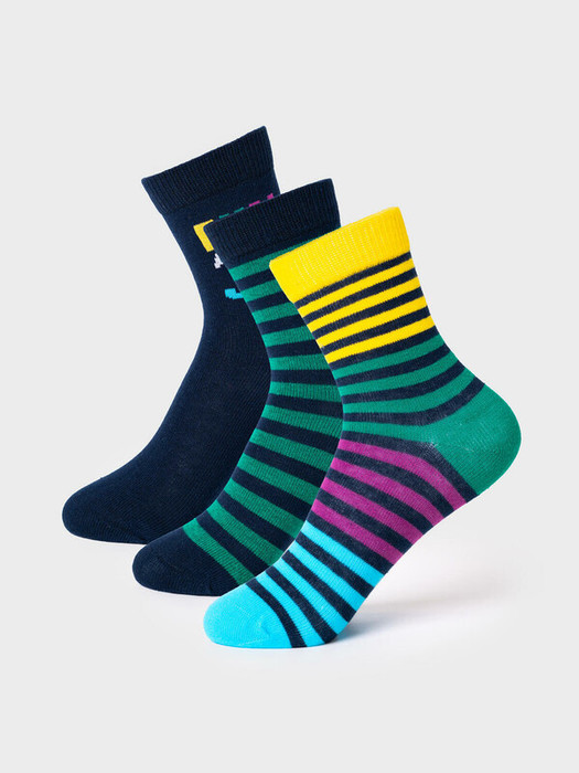 Набор из трех пар детских носков для мальчика. В комплект входят модели с полосками, однотонные и с принтом. Удобная резинка не сдавливает ногу, а на стопе — аккуратная жаккардовая надпись с размером. Материал — мягкий хлопковый трикотаж.