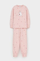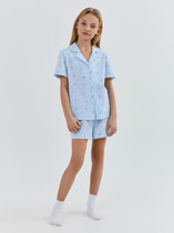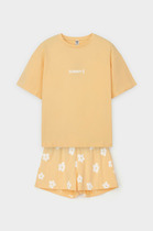 Пижама детская для девочки. Футболка оверсайз и шорты из эластичного и приятного на ощупь трикотажа. Шорты на резинке со шнурком. Высокое содержание хлопка 95%. Благодаря наличию эластана в составе ткани изделие держит форму и меньше мнется.