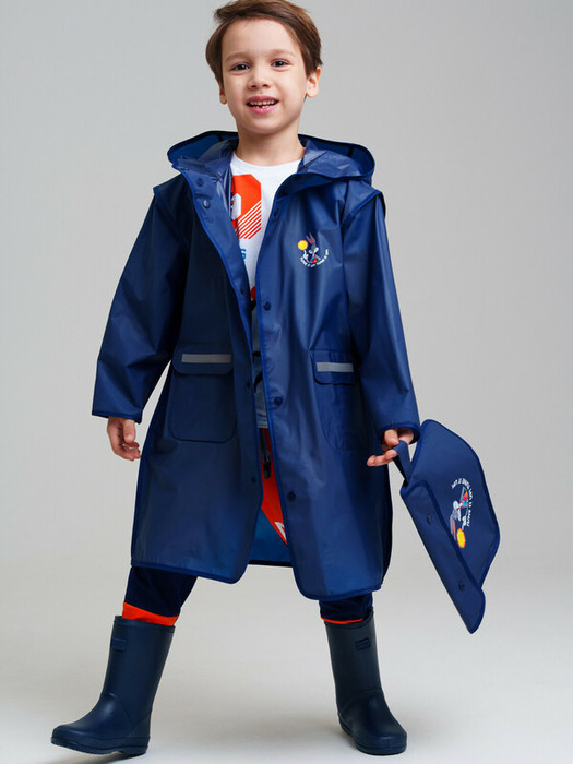 Дождевик детский с козырьком с BUGS BUNNY (Багз Банни) для мальчика. Застежка на кнопки. Материал ЭВА. Без подкладки. Модель имеет спереди два накладных кармана с клапаном. Сзади имеется объемный клапан на кнопках для изменения объема плаща под рюкзак. Есть светоотражающие элементы спереди и сзади. Добавлена петелька под капюшоном с внешней стороны, чтобы остальные вещи на вешалке не намокали. Модель идеально сочетается с резиновым сапогам и зонтом из коллекции. В комплекте идет непромокаемая сумочка