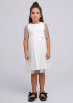 Платье трикотажное с юбкой из мягкой сетки. Верх платья из трикотажа с высоким содержанием хлопка 95%. Благодаря наличию 5% эластана в составе ткани изделие держит форму.