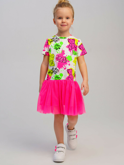 Платье детское для девочки. Платье из качественного и приятного на ощупь трикотажа джерси. Высокое содержание хлопка 95%. Благодаря наличию эластана в составе ткани изделие проще в уходе и держит форму. Декор из сетки. Модель выполнена из качественного и приятного на ощупь трикотажа.