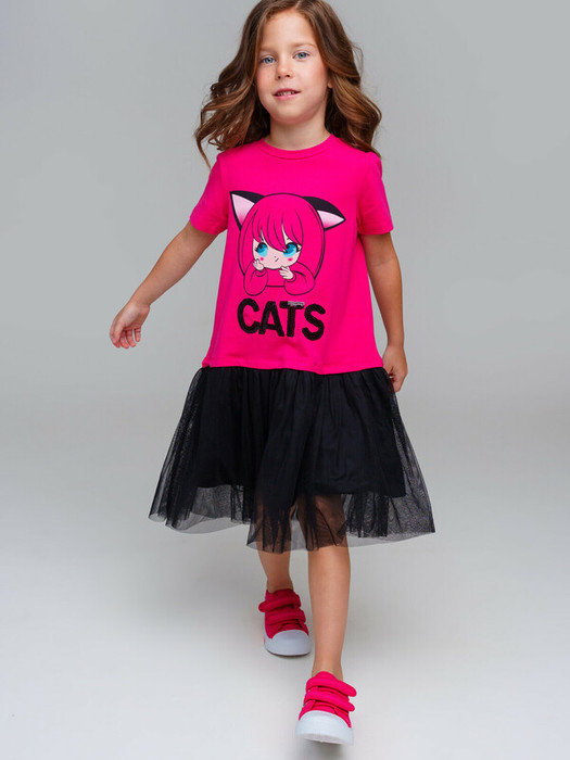 Платье детское для девочки. Нарядное платье с высоким содержанием хлопка. Модель из капсульной коллекции CATS DREAM. Соберите полный образ в едином стиле!    Модель выполнена из качественного и приятного на ощупь трикотажа.