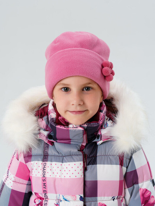 Эта тёплая шапка для девочки подойдёт для детского сада, прогулок, активных игр на улице и поездок. Двойной слой флиса отлично держит форму, защищает уши и голову от холода, а ещё быстро сохнет после стирки.