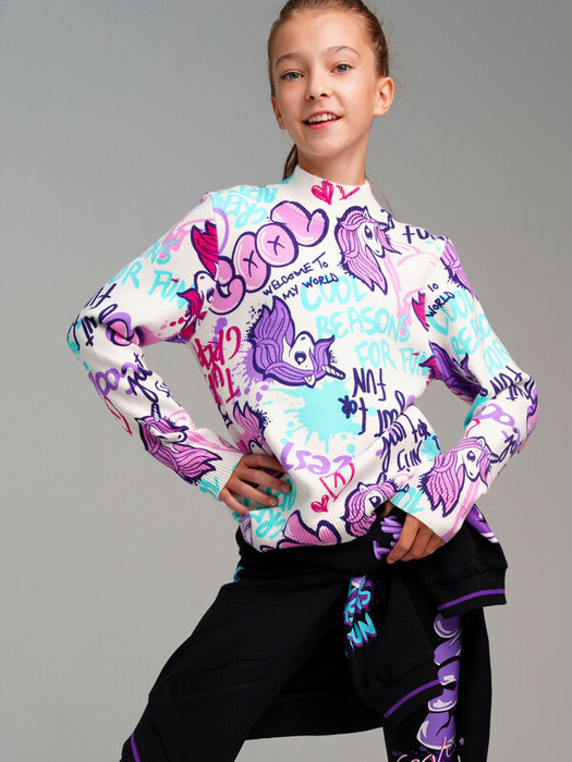 Свитер для девочки подростка. Модный свитер из вязаного трикотажа с высоким содержанием вискозы. Вискоза хорошо поглощает влагу, отлично пропускают воздух. Изделия приятны к телу, и не вызывают раздражения. Модель из капсульной коллекции UNICORN KUROMI (ЮНИКОРН КОРОМИ). Соберите полный образ в едином стиле!