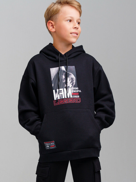 Толстовка оверсайз для мальчика подростка. Модное худи с высоким содержанием хлопка. Капюшон с утяжкой шнурком. Карман-кенгуру. Модель из капсульной коллекции PRO BOXING (ПРО БОКСИНГ). Соберите полный образ в едином стиле! Модель выполнена из качественного и приятного на ощупь трикотажа.