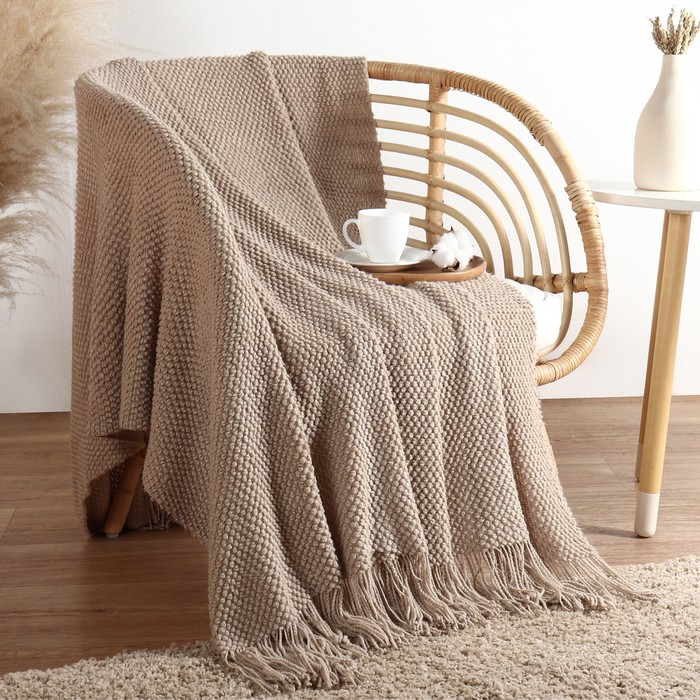 Совместные покупки Пермь Товары для дома и дачи Покрывала, пледы — Плед акриловый с кистями 300г/м2 Бежевый