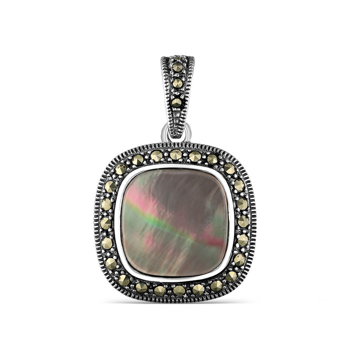 Подвеска из чернёного серебра с нат. перламутром и марказитами 925 пробы MN00675