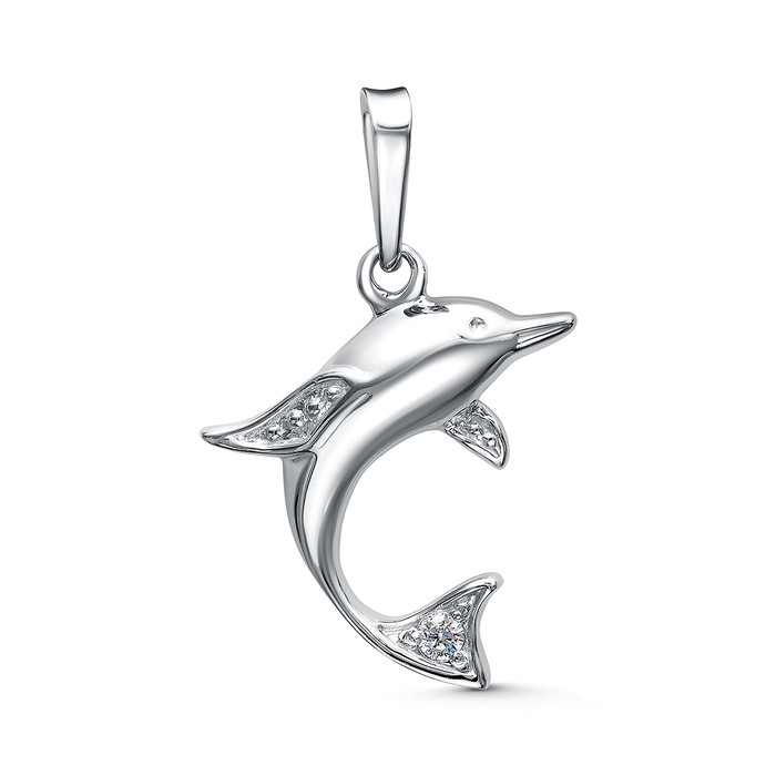 Совместные покупки Пермь Ювелирные украшения и бижутерия Подвески — Подвеска из серебра с фианитом родированная - Дельфин 925 пробы ПДл-009р200