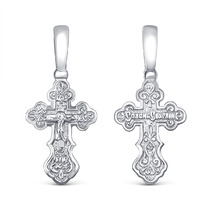 Крест православный из серебра родированный - Спаси и сохрани 3,1 см 925 пробы 2-