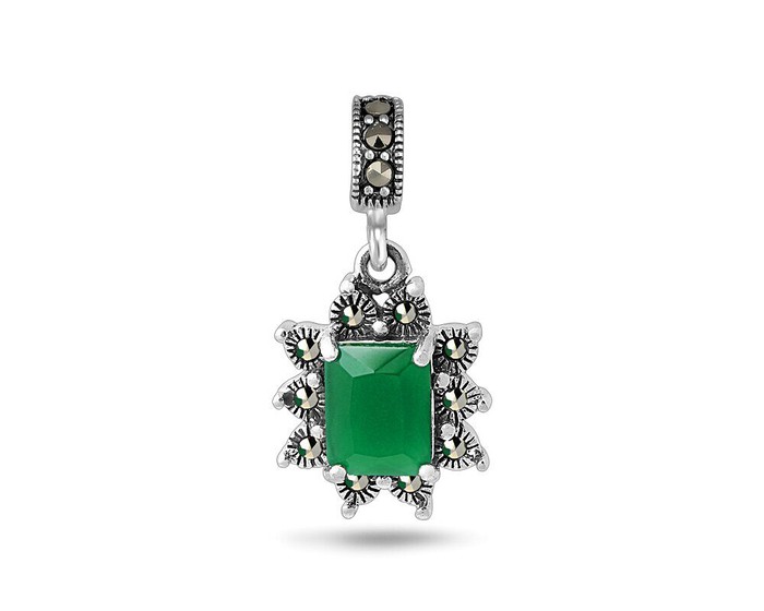 Подвеска, марказит , синт.изумруд, SL-AGA1631