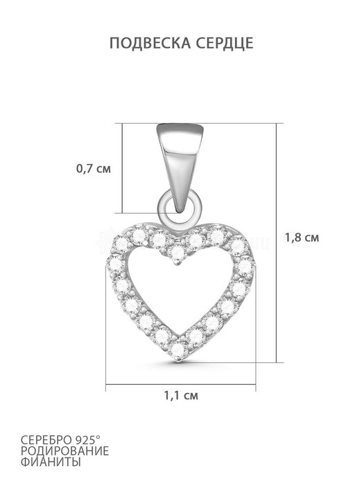Совместные покупки Пермь Ювелирные украшения и бижутерия Подвески — Подвеска Сердце из серебра с фианитами родированная