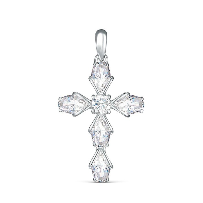 Подвеска в виде креста из серебра с фианитами родированная
