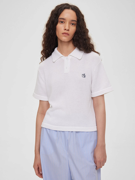 Совместные покупки Пермь Женская одежда Джемперы, свитеры, водолазки — Поло с коротким рукавом из хлопка с вышивкой, белый