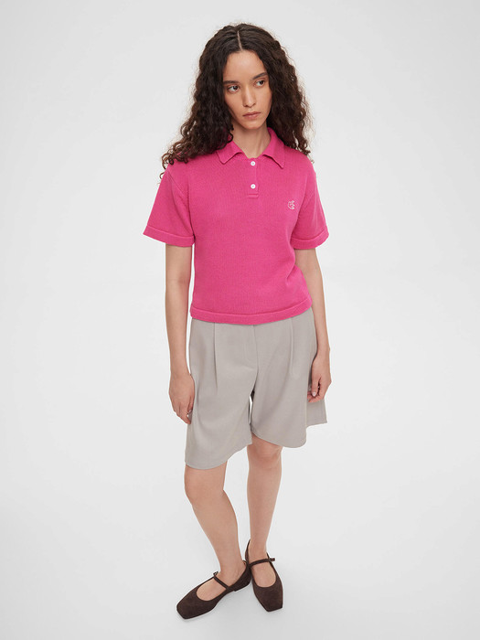 Совместные покупки Пермь Женская одежда Джемперы, свитеры, водолазки — Поло с коротким рукавом из хлопка с вышивкой, розовая фуксия