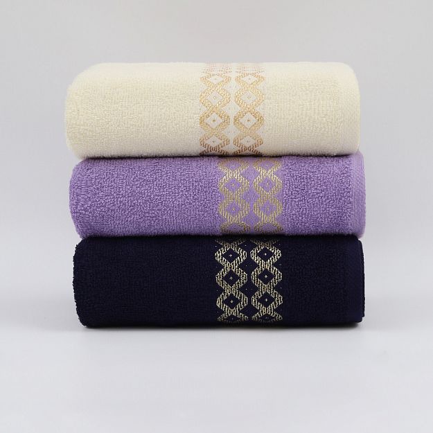 Полотенце махровое Блеск набор 2619 Крем + Тёмно-синий + Сирень 3 шт, 50*80