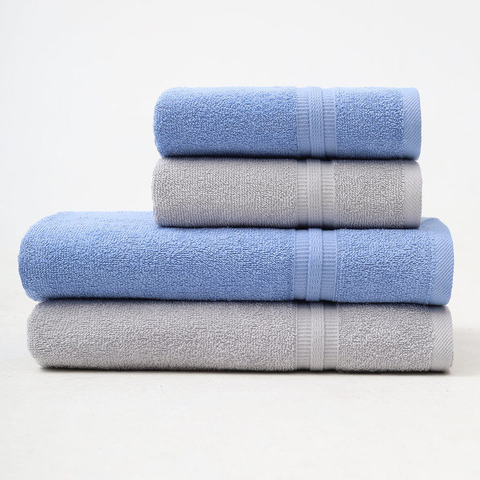 Полотенце махровое Каскад набор 2804 Серый + Аметист 4 шт, 50*80, 70*130
