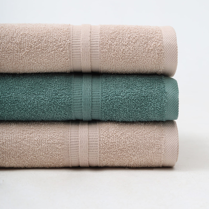 Полотенце махровое Каскад набор 3013 Бежевый + Полынь 3 шт, 70*130