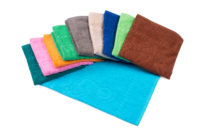Полотенце махровое жаккардовое гладкокрашеное. Изделие выполнено высококачественной кольцепрядильной пряжи повышенной мягкости. Петля из двойной крученой нити. Рисунок "ножки" выполнен методом разноуровневой петли. Плотность: 450 гр/м2. Состав: 100 % хлопок. Страна производства: Узбекистан.